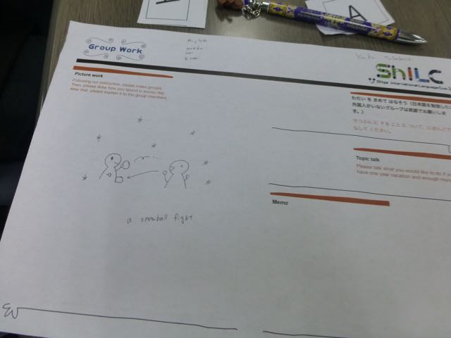 We talked about "What do you do in a snowy day?".